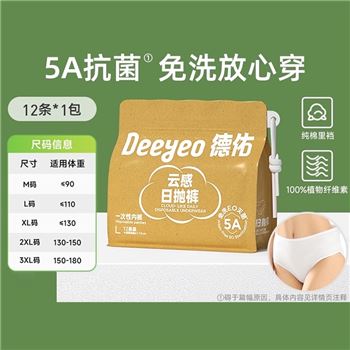 德佑5A级云感日抛裤一次性内裤XL码12条(2001DYDU042)