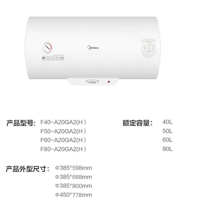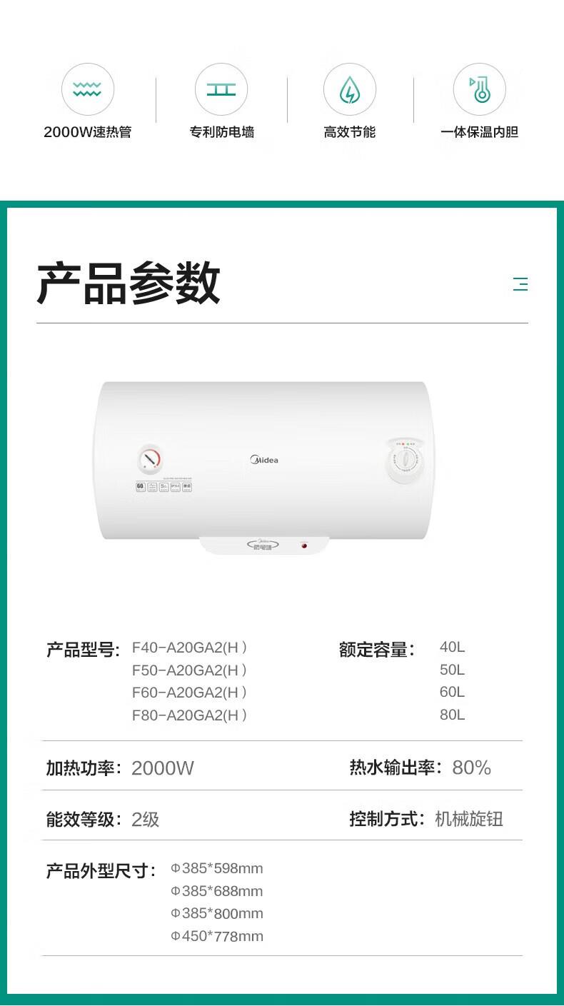美的(Midea)60升电热水器速热储水式 2000W 防电防漏 低耗保温 F60-A20GA2(H)