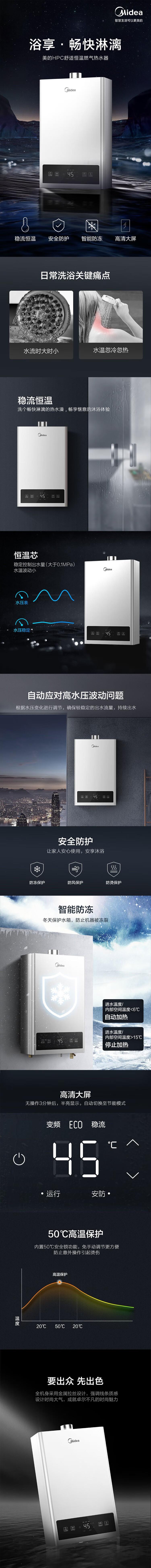 美的(Midea)13L燃气热水器 稳流恒温强排式天然气 低水压可启动高清大屏 JSQ25-13HPC