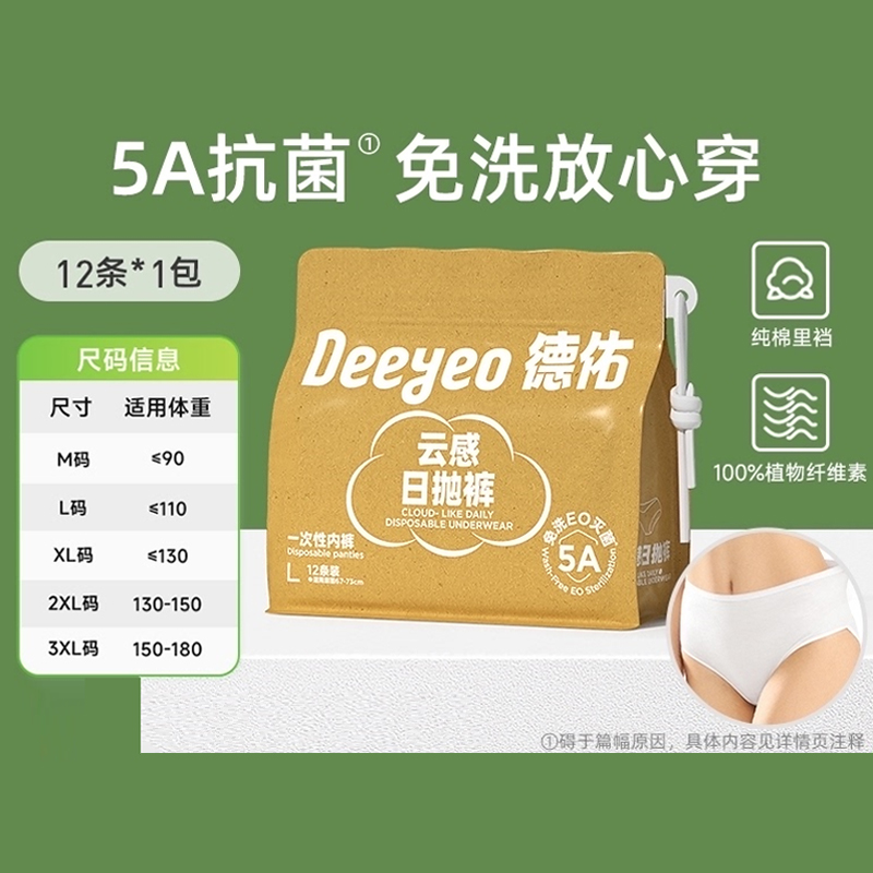德佑5A级云感日抛裤一次性内裤XL码12条(2001DYDU042)